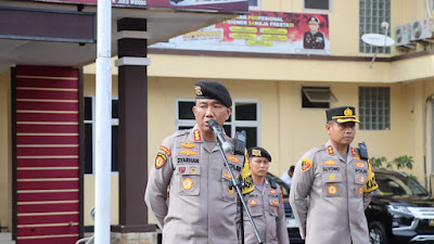 Kapolres Lebak Pimpin Apel Persiapan Pengamanan Kunjungan Presiden RI di lapangan Mapolres Lebak